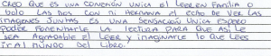 La evaluación destaca la importancia que tuvo el proyecto para fortalecer los lazos afectivos en la familia a través de la lectura en el hogar. La lectura se constituía en un momento de comunicación afectiva entre hijos y padres, distinta a lo cotidiano del aseo, comida, etc. Las personas participantes destacaron que el proyecto les proporcionó un acercamiento con la lectura y los libros, que no habían tenido anteriormente.